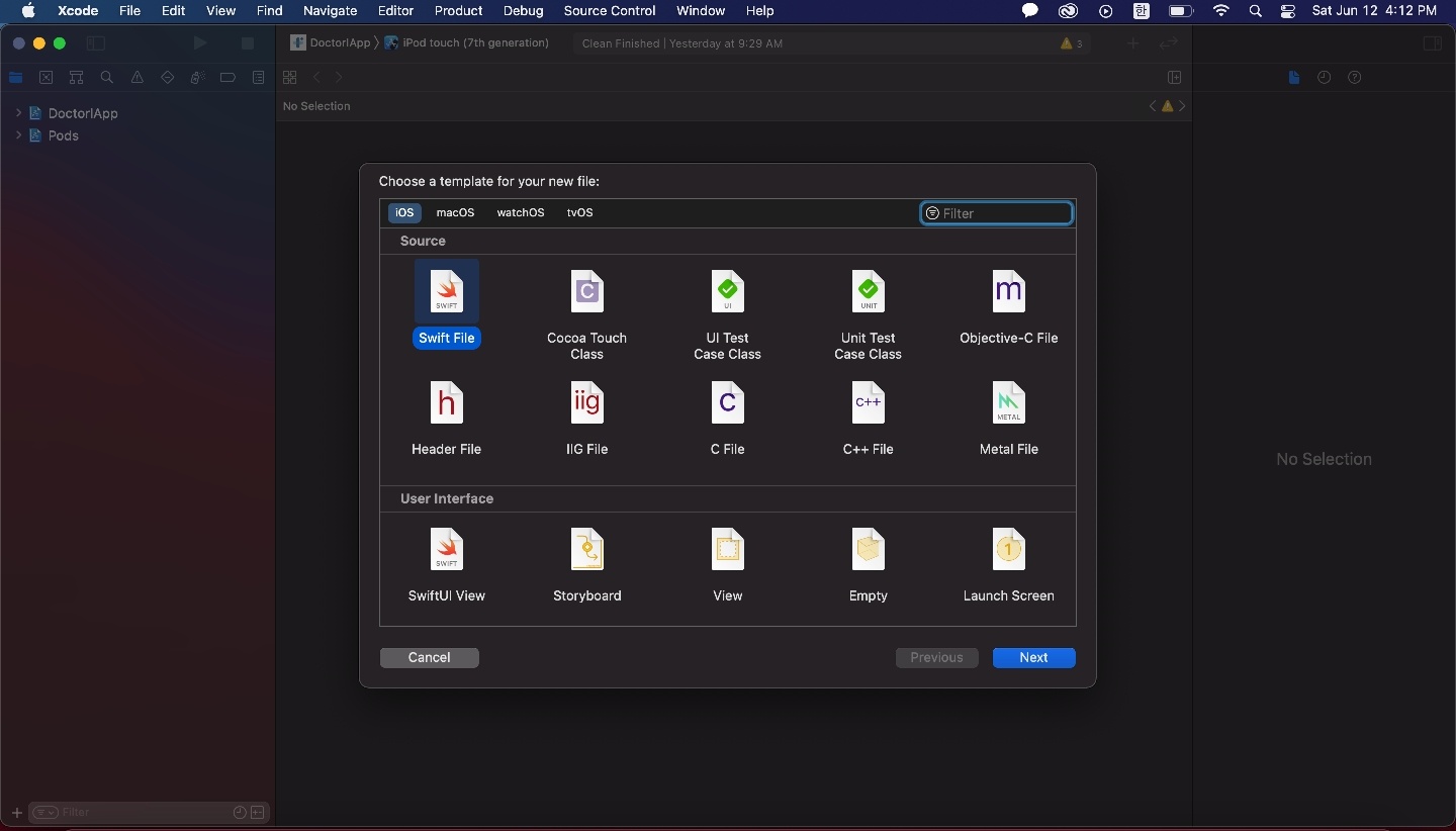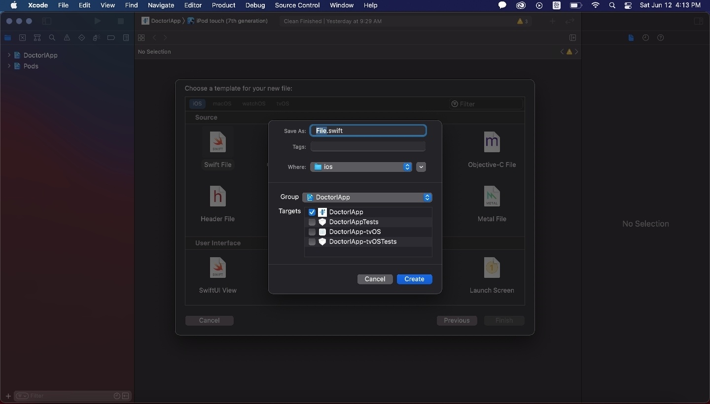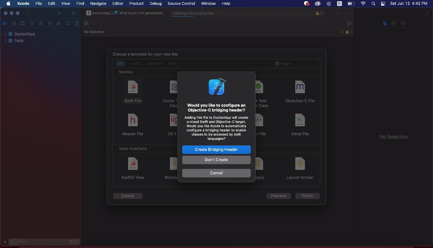 여기서 꼭 Create Bridging Header를 클릭해야한다.
