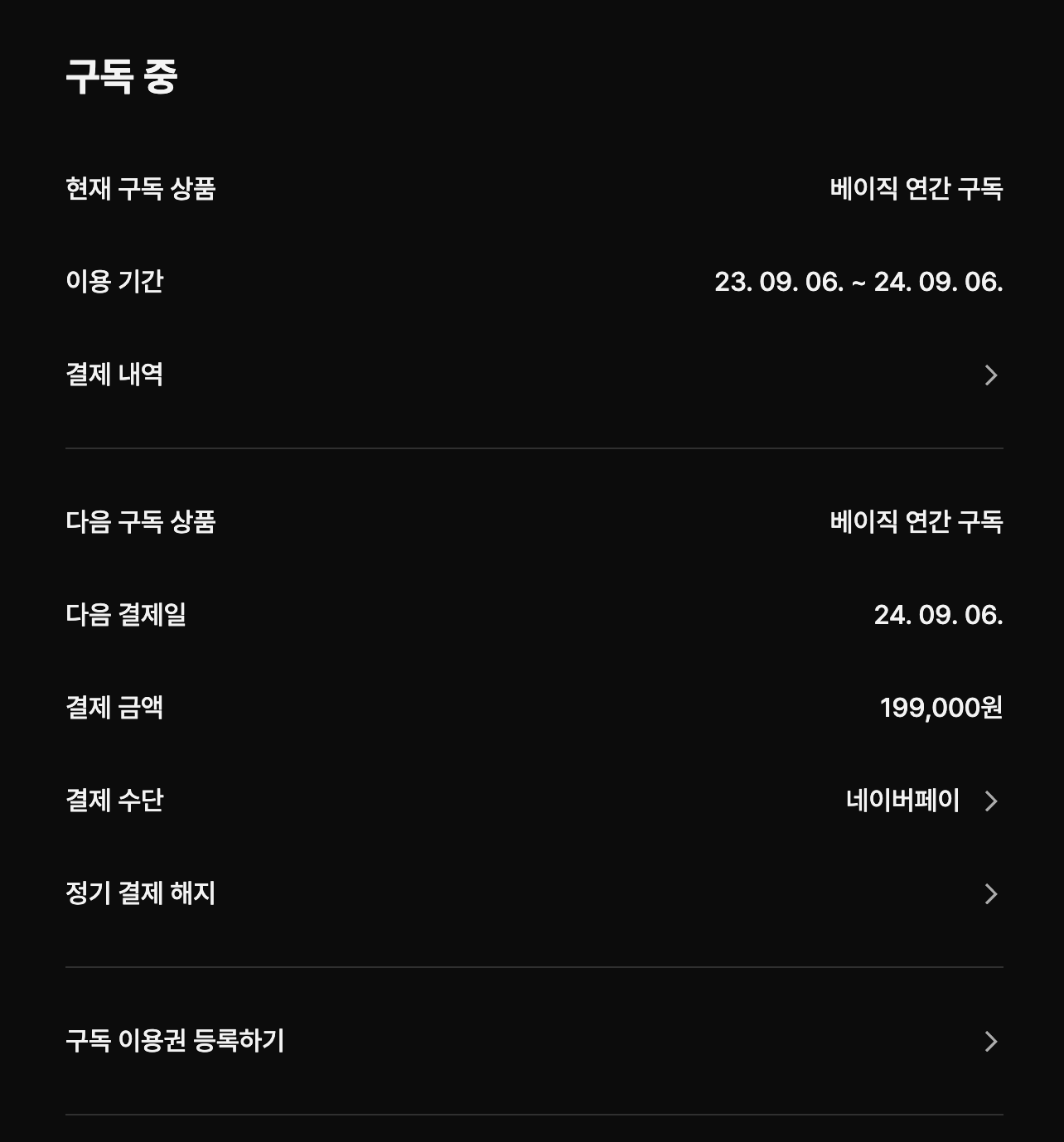 100% 내돈내산이고 인증 위해서 구독권 관리 페이지 캡쳐해서 올립니다!